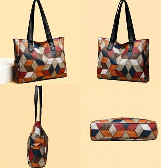 GeoMuse Patchwork Tote – Bold Cubic Pattern Meets Everyday Function