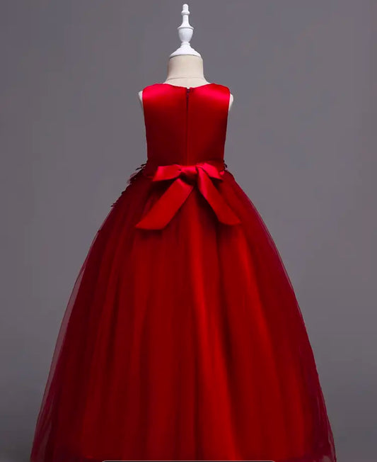 Girls:Red Floral Embroidered Mesh Overlay, round Neck Polyester for the perfect wedding, pageants Church Performances public presentation