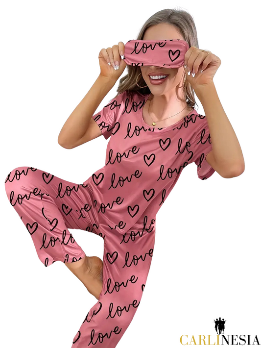 Rosé Luxe Heart Pajama Set – Elegance in Comfort