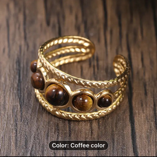 18k plated golden stainless Tiger Eye bracelets, earing rings,necklace with golden stone,extravaganza adjustable looks.