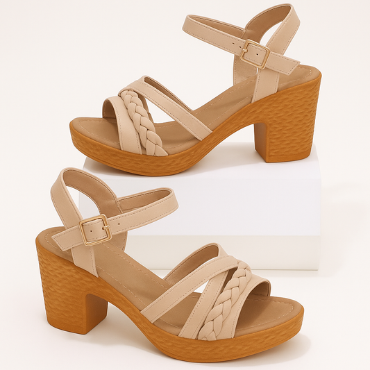 Braided Bliss Chunky Heel Sandals – Elegant Comfort in Every Step